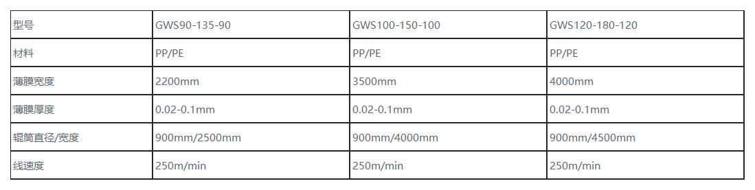 CPP、CPE流延膜生產線 · 技術參數