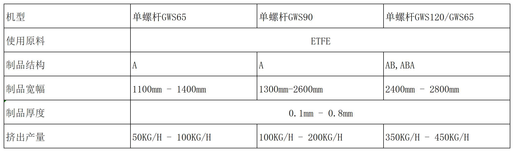 ETFE薄膜是含氟塑料中的其中之一,具有良好的ETFE膜透光率、自潔性、絕緣性能、抗?jié)駸岷湍屠匣阅芏粡V泛應(yīng)用在各個領(lǐng)域。ETFE氟塑料膜由于含有氟元素,在熱加工時容易發(fā)生熱分解,腐蝕加工設(shè)備和模具,因此,加工設(shè)備和工藝不同于普通的熱塑性塑料。本生產(chǎn)線采用特殊設(shè)計的設(shè)備和工藝技術(shù),成功開發(fā)出了ETFE等氟塑料薄膜的流延擠出生產(chǎn)線。