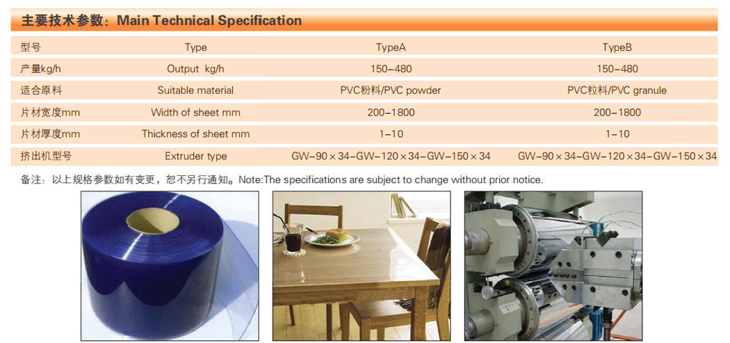 超透明PVC軟板材生產(chǎn)線 Highly transparent S-PVC sheet extrusion line